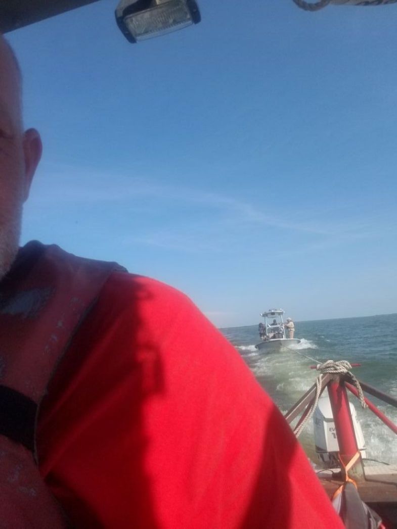 Photo: Towing a boat that is broke down